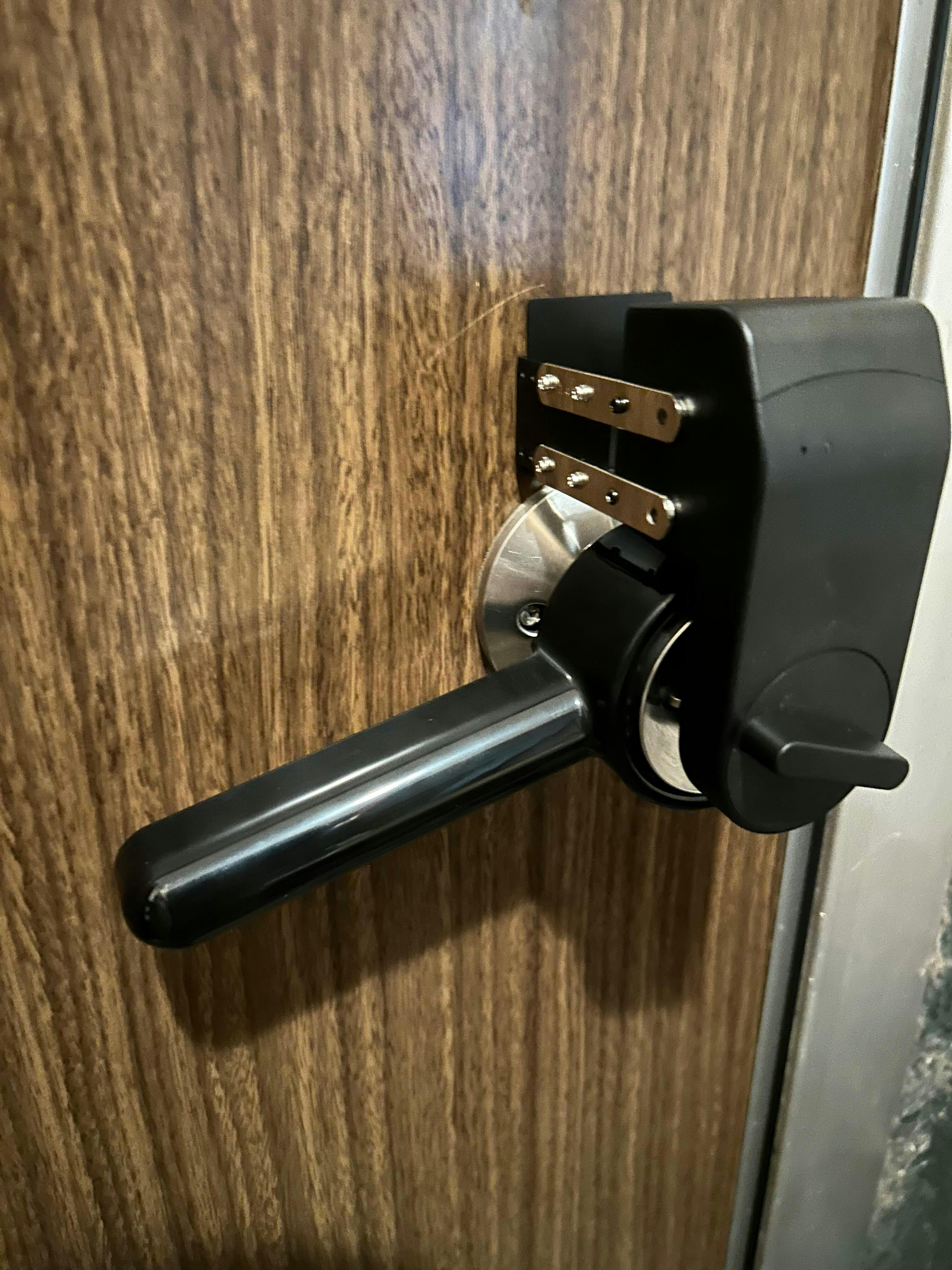 社員寮用に購入しました。誰が開けたか、確認できるので便利です。1年使っていますが電池も問題ありません。しかし、光が当たるところなのか、数字のボタンにヒビが、太陽の劣化かな。ドアノブに鍵があるタイプなので、ホームセンターで延長金具を買ってとりつけました。250円位でつけられました。