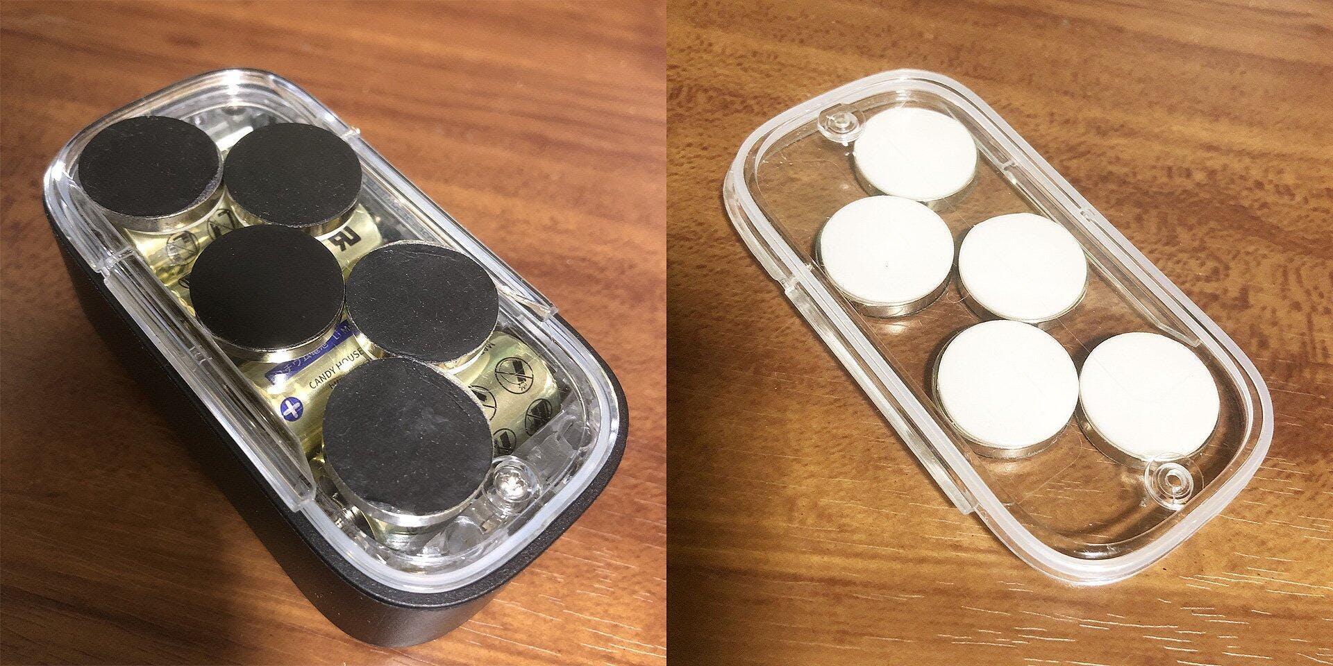 磁石を電池カバーに直接貼るのではなく、電池カバーを外した製品の背面に直接お貼りくださいませ。🙋♀️