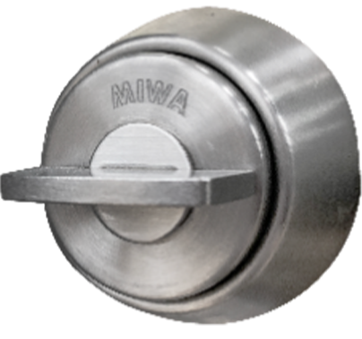 黒いプラスチックの長方形のサムターンは特殊アダプター不要(MIWA 85RAとサムターンが同じ形状のため)
